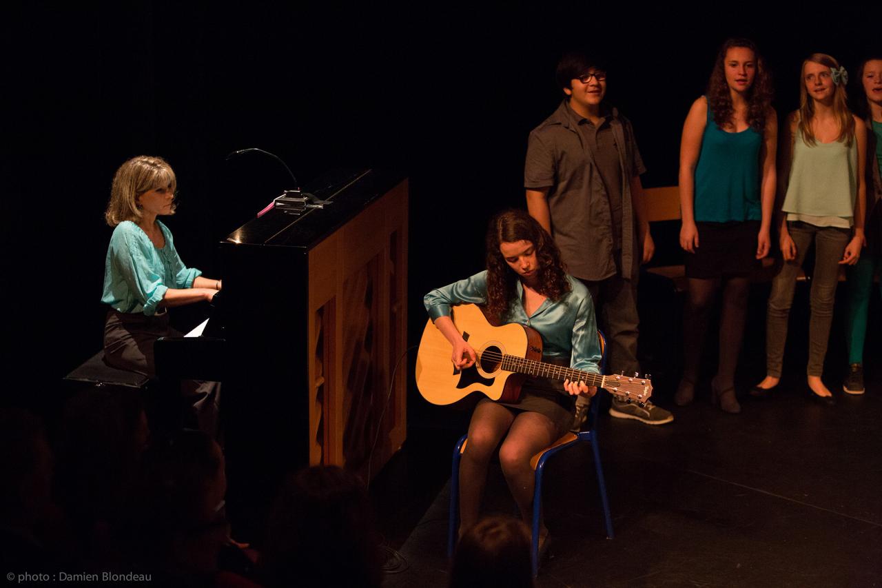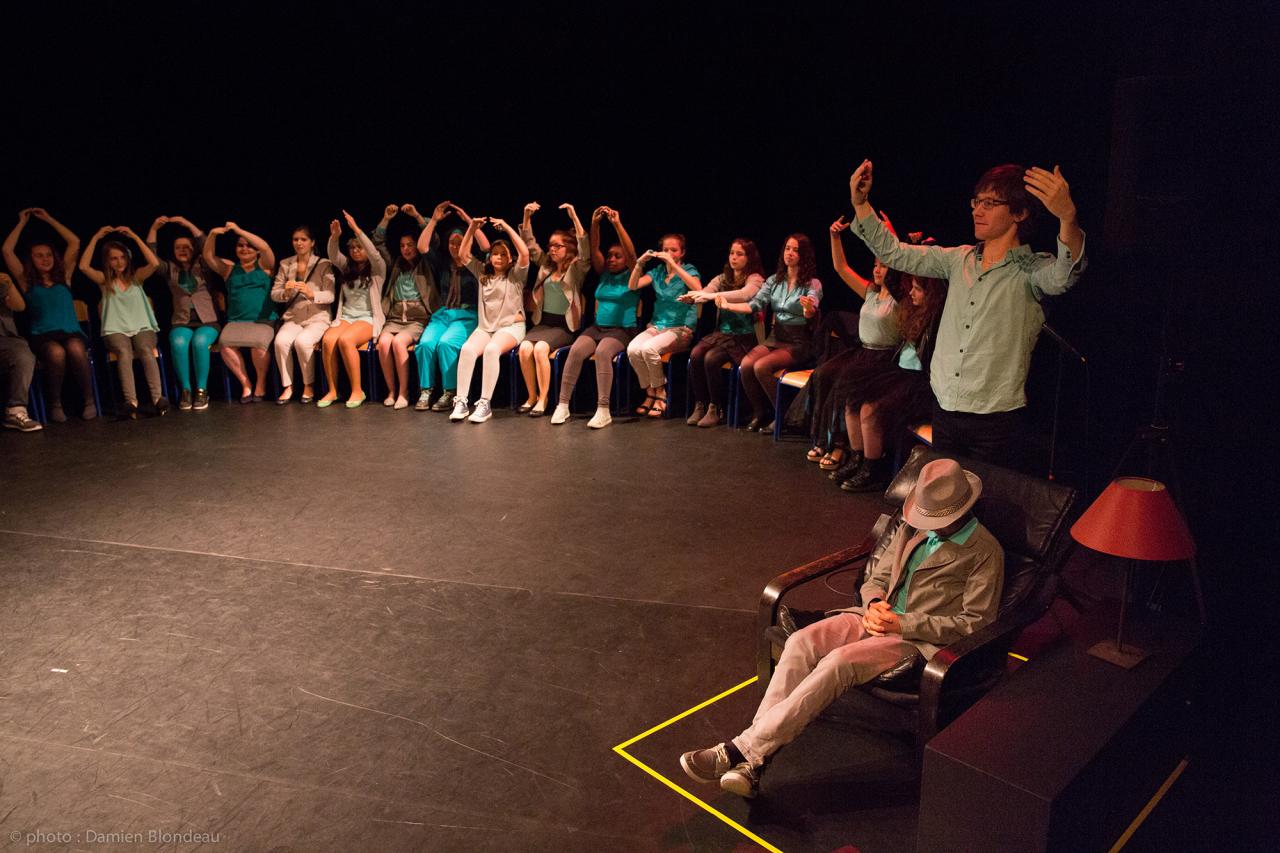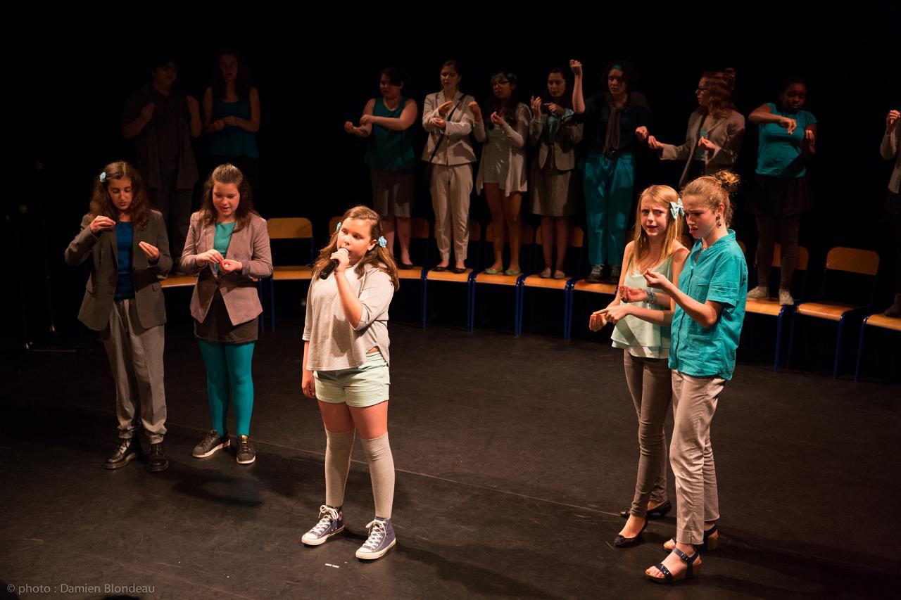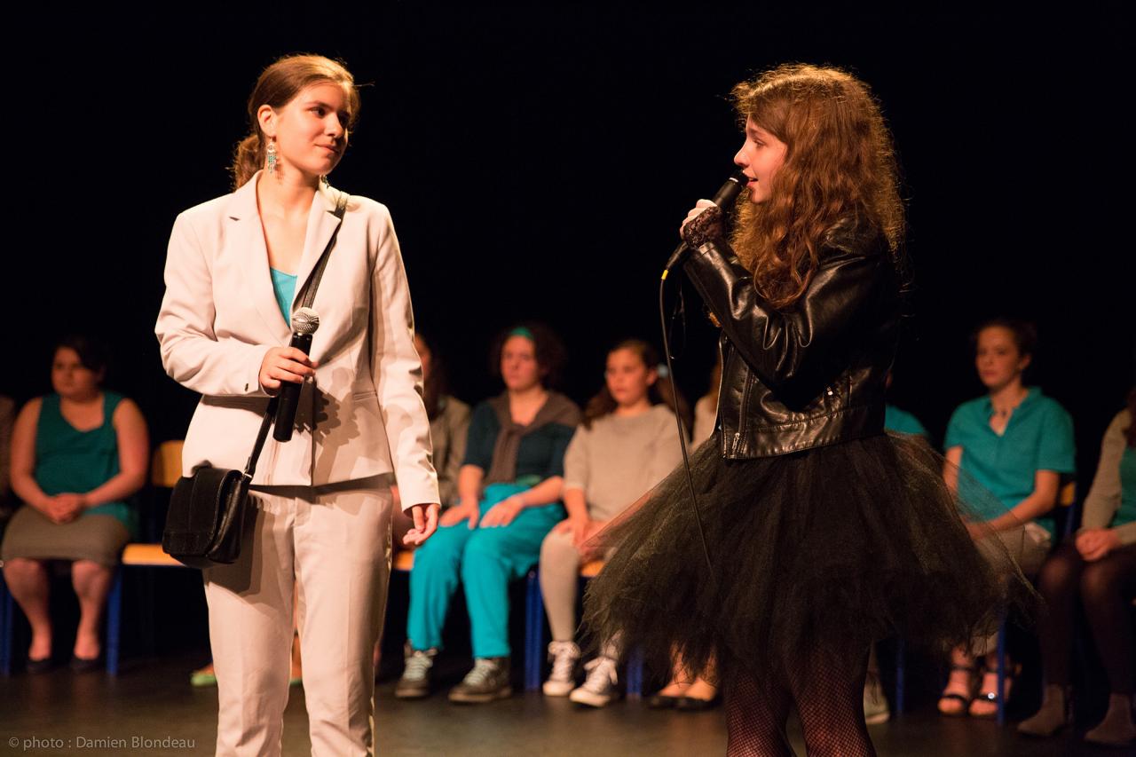 Accompagnés par Marie Chasles (metteur en scène) et Anne Blondeau (coordinatrice, professeure de musique au collège) :
